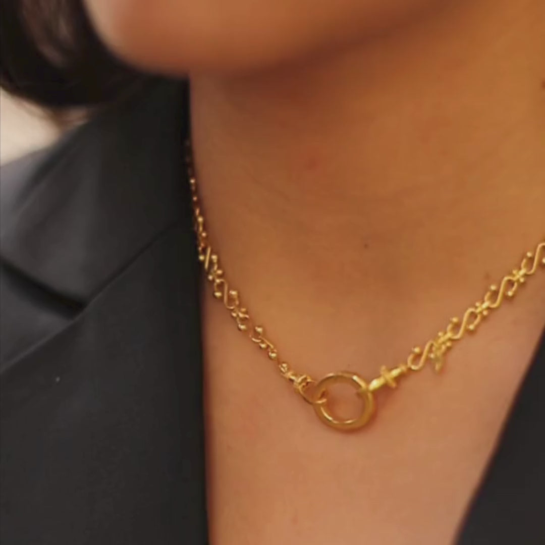 Our beautifully detailed APPOLINE necklace makes the perfect subtle statement. Part of our multiway collection; you can wear it alone, pair it with any of our pendants or remove the central ring for a simpler look and smaller size.