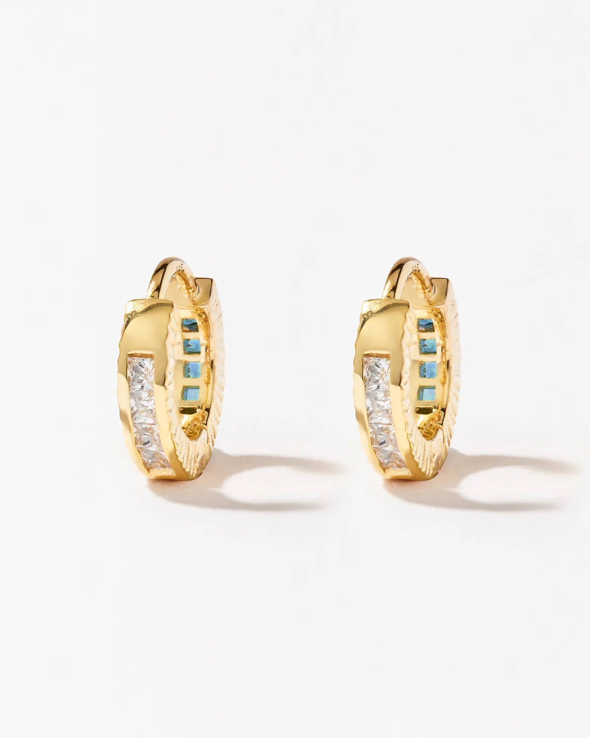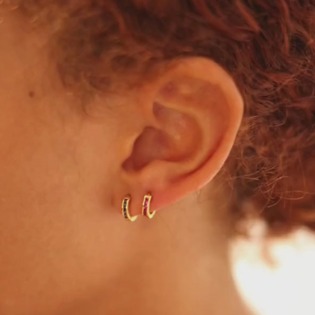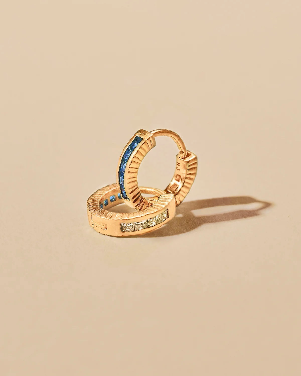 The latest colourway of our bestselling ARIA earrings. With stunning cobalt blue stones on one side, white on the other, these gold vermeil huggies are multiple pairs of earrings in one: simply reverse them to switch up your look, or add our earring charms if desired (though please take note of dimensions to ensure you choose the correct size for you).