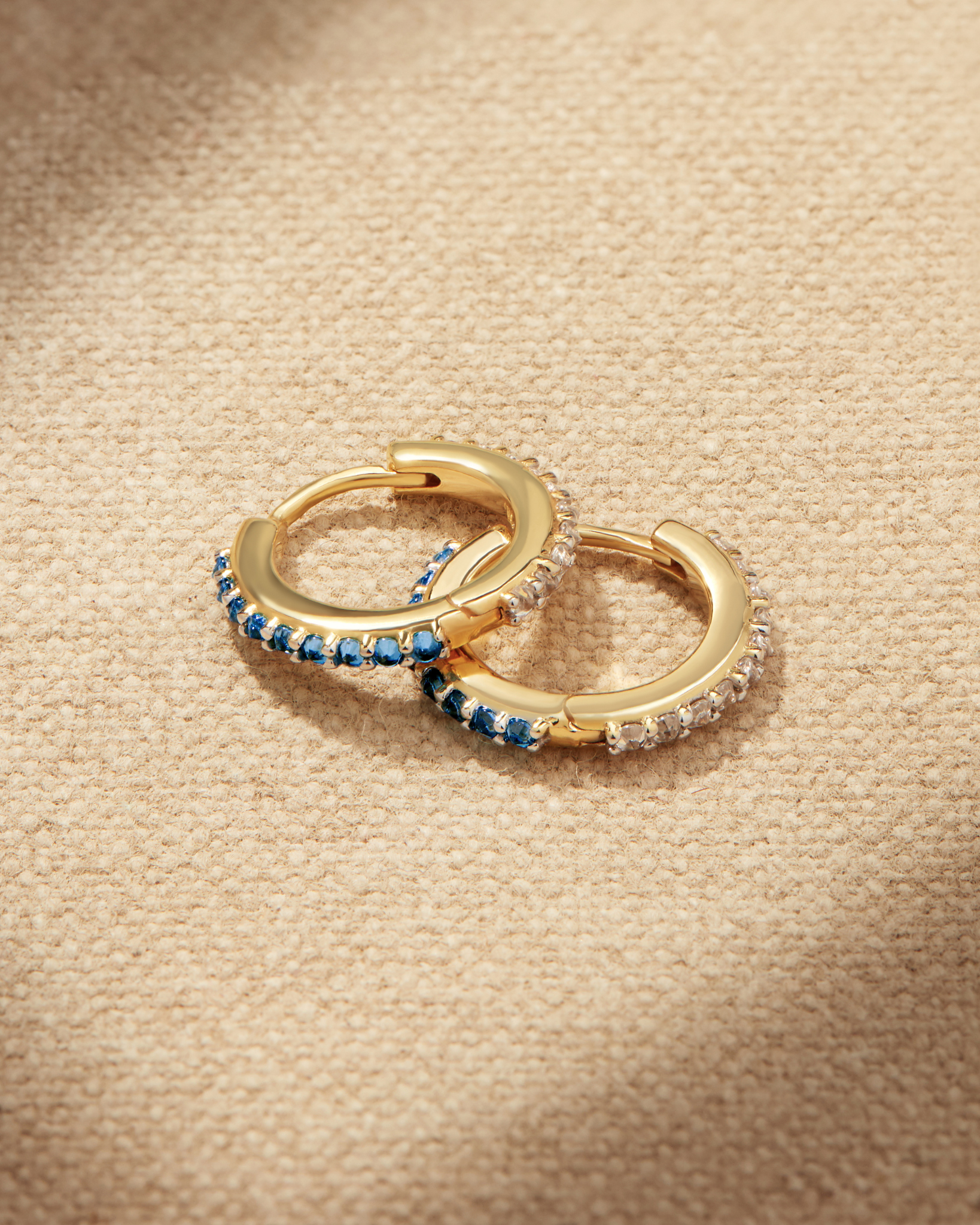 Our trademark reversible huggie hoops, now in dazzling white and sapphire crystal. The ELARA huggies can be worn alone, reversed for an instant colour change, or paired with any of our gorgeous earring charms. We particularly love these with our new LYRA charms.