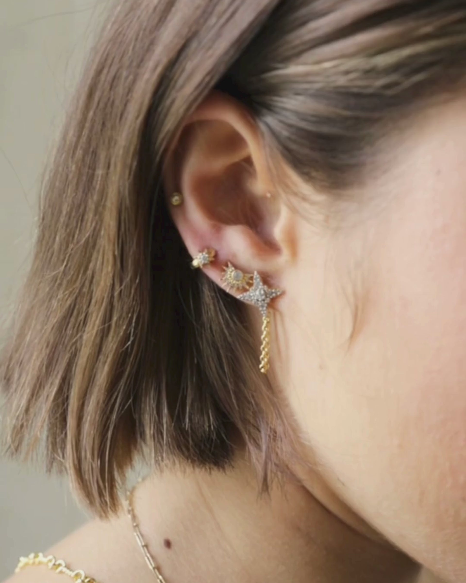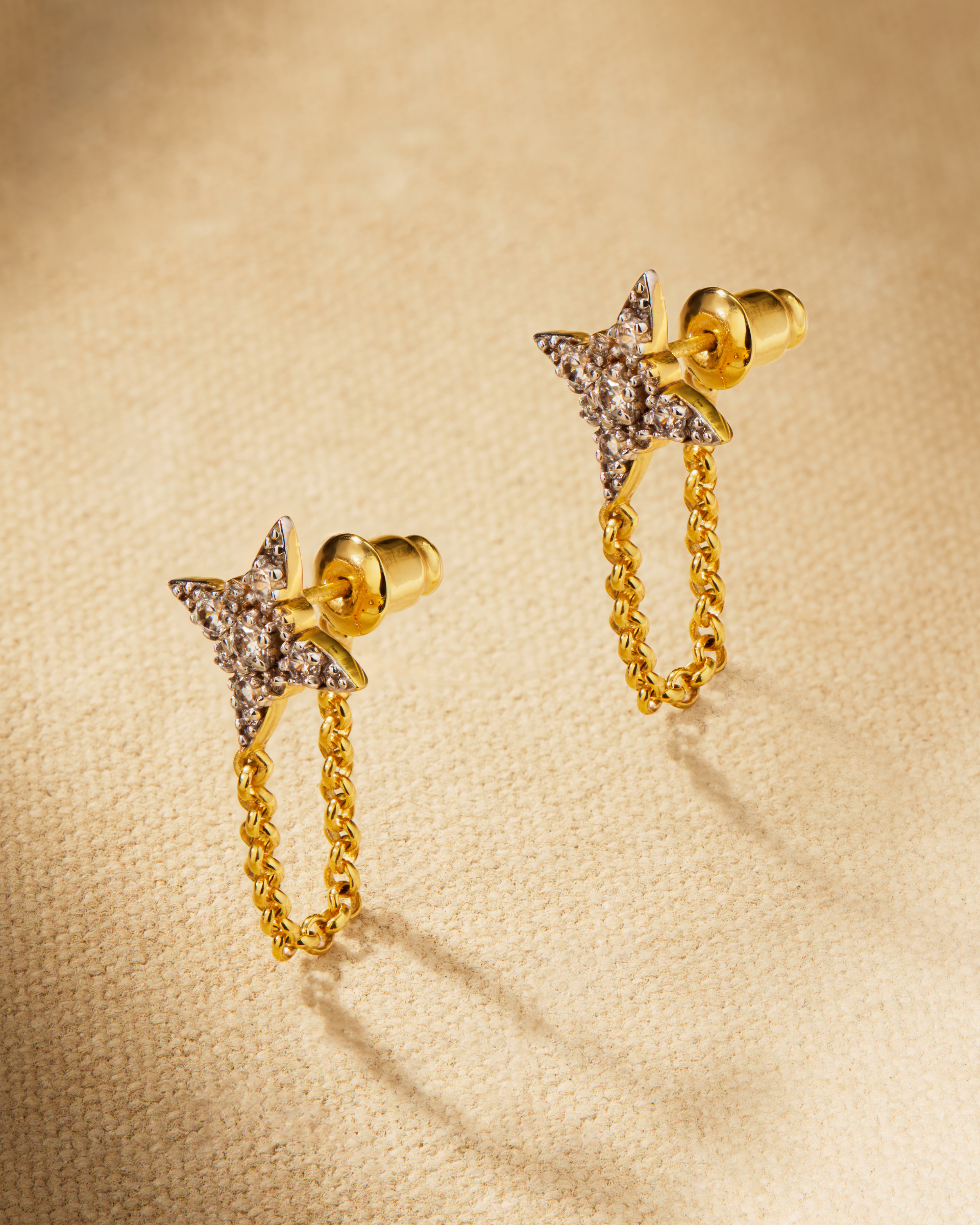 Our ETOILE Chain Earrings make the perfect delicate statement for party season. Our signature star design, with a delicate chain drop, ETOILE are ideal for a touch of celestial sparkle.