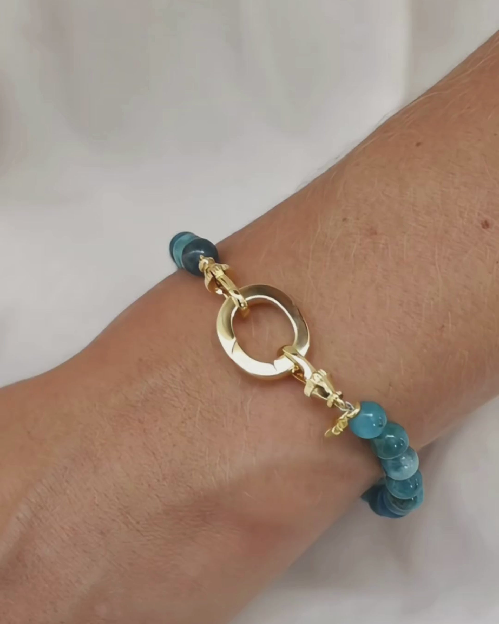 A single strand of Apatite Gemstone Beads, finished with our signature antique-inspired lobster clasps. This piece forms part of our multiway collection, where the connecting oval ring can be worn as focal point, used to add one of our pendants, or removed completely for a slightly smaller fit and more subtle look.