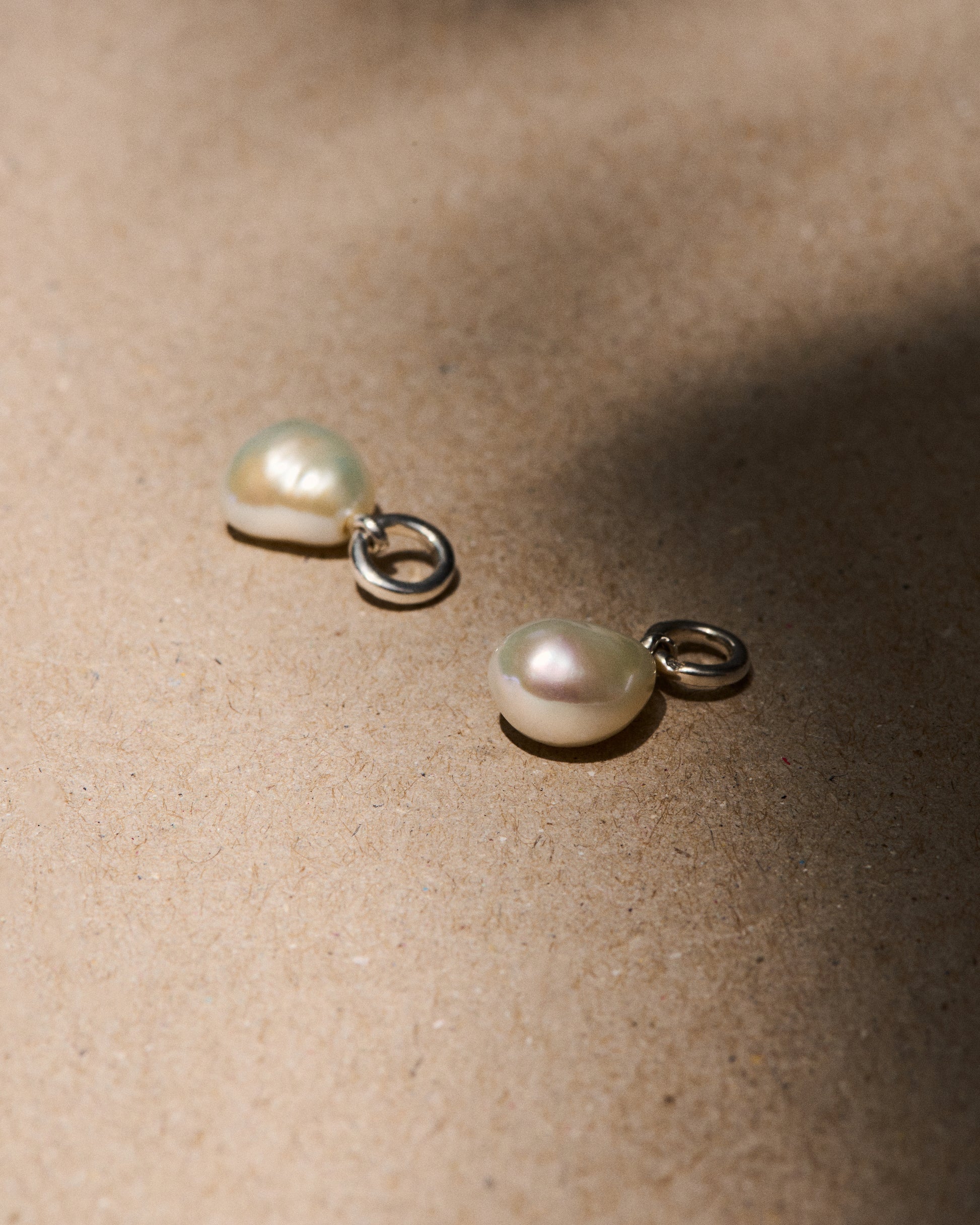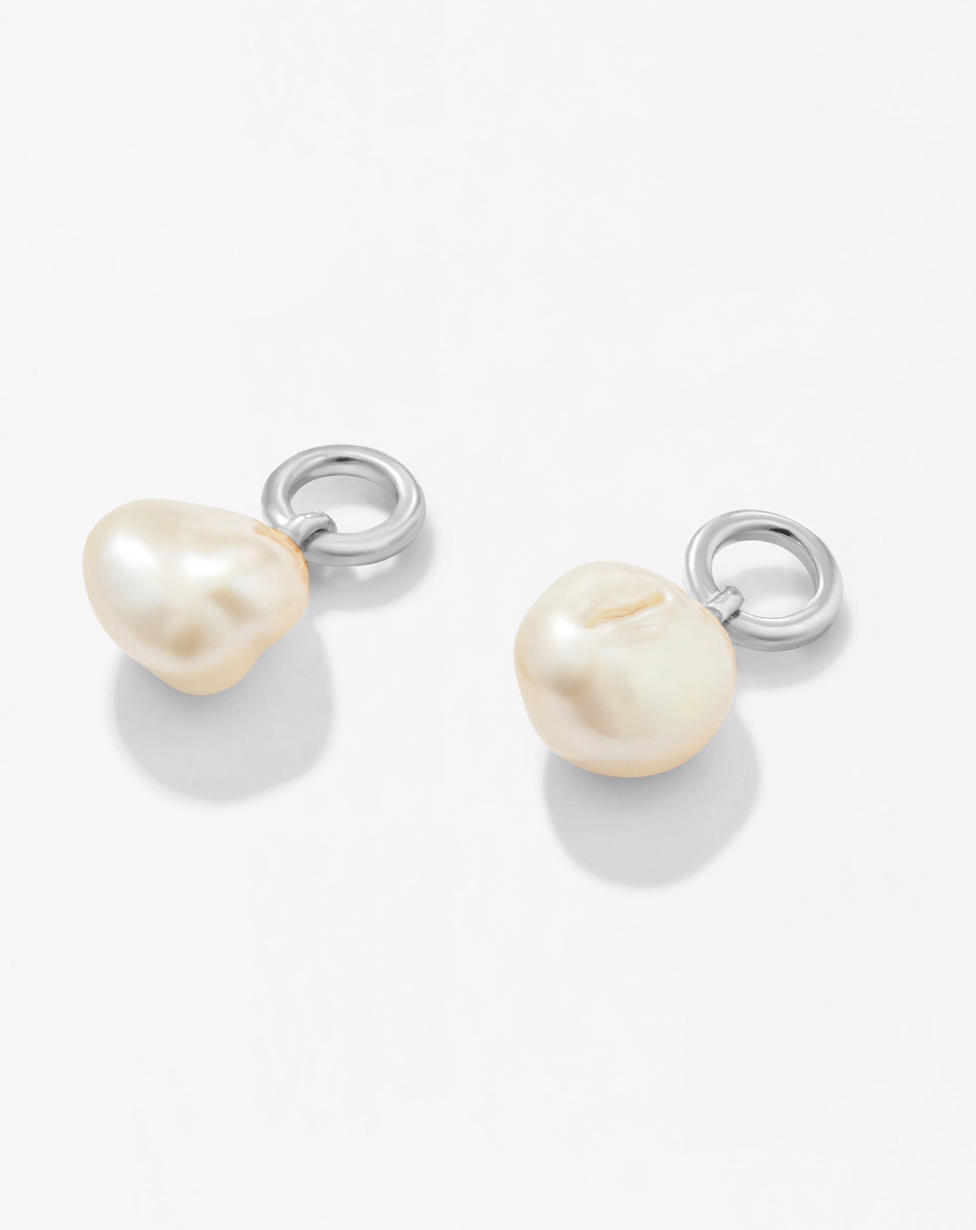 One pair of pearl drop earring charms in silver. Crafted from recycled 925 silver-plated brass with freshwater pearls. Please note - the size and shape of the pearls may vary.