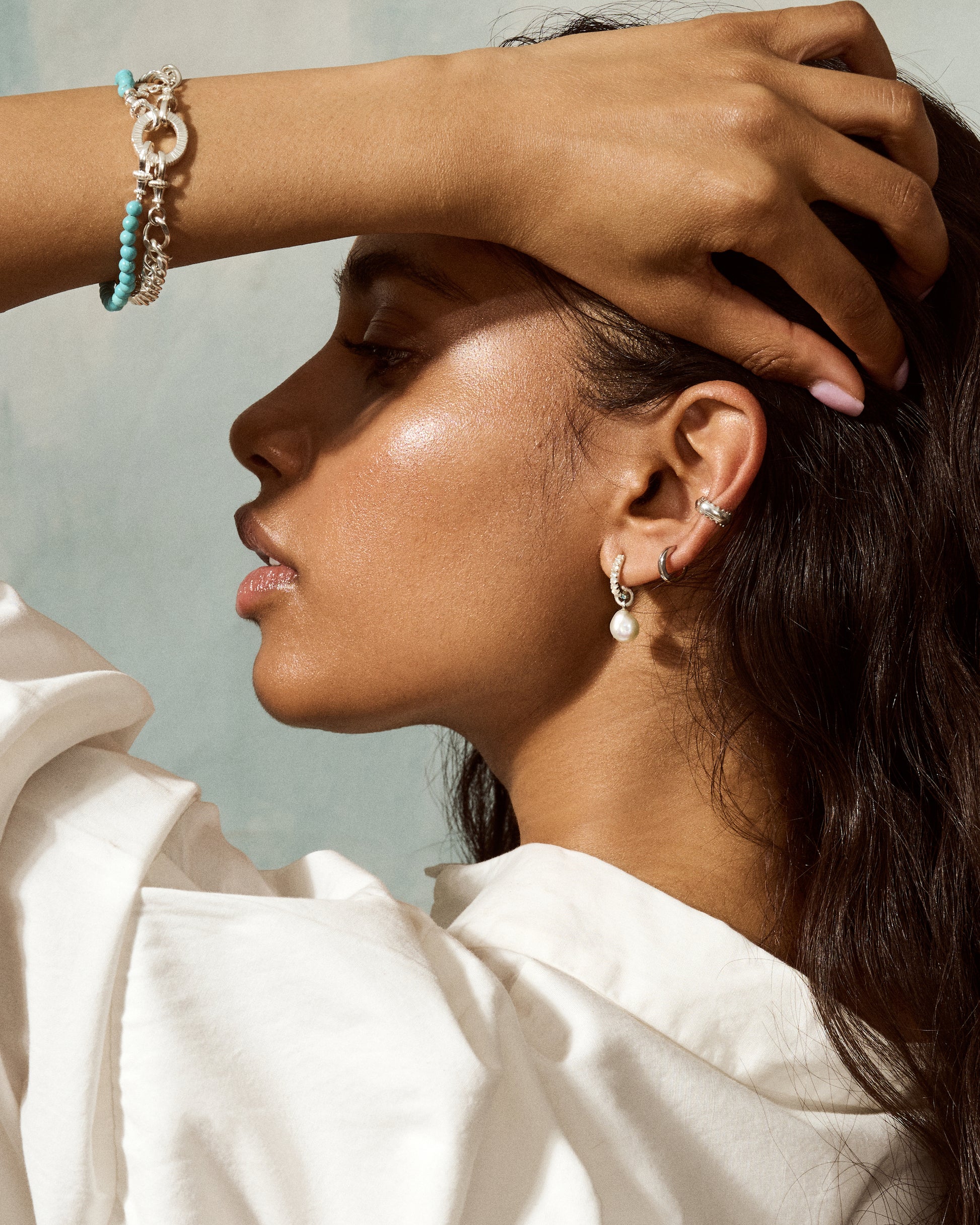 The LANA pearl charms can be paired with any of our huggie or small hoop earrings (the COIN, CARA or DELTA) for an instant update to your look. Crafted with freshwater pearls, they make a timeless addition to any jewellery collection.