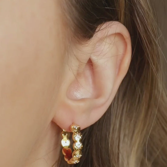 18ct gold-plated brass hoops set with white cubic zirconia stones.