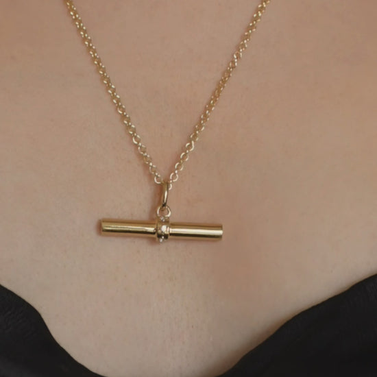 The LEXI T-Bar pendant features a refined, faceted finish with fine star engraving and delicate crystal detailing. Paired with our IVY fine chain, it offers a lighter, versatile option for everyday wear.