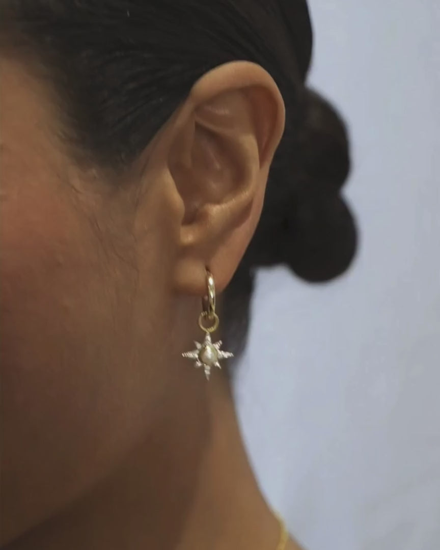 Our intricate LYRA earring charms, now in timeless pearl, can be worn with any of our reversible hoops or even your own hoops.