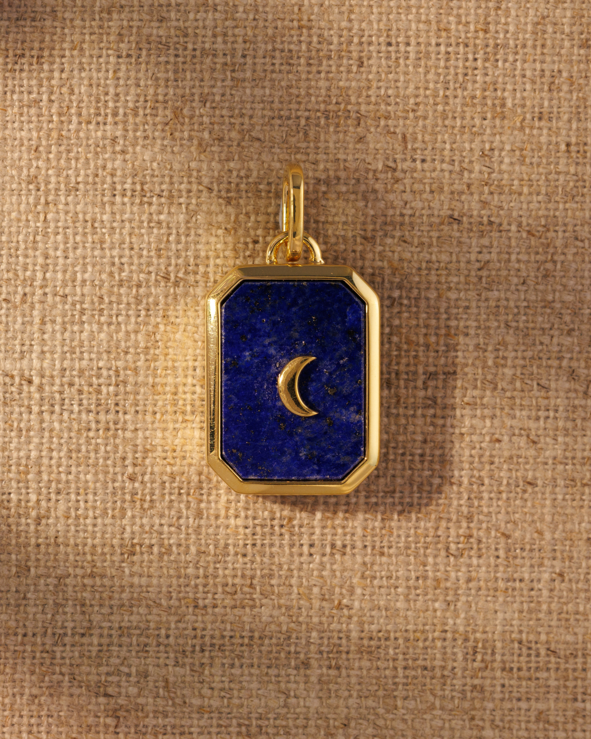 Our current favourite combination… This set pairs our stunning, rectangular, reversible MOON TALISMAN pendant paired with our IVY chain in gold and our striking INDIGO Beaded Gemstone Necklace.