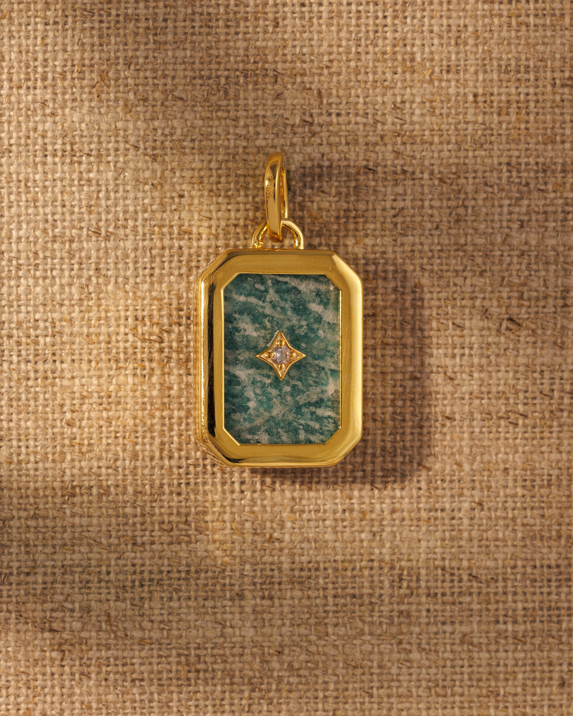 Pendant: Recycled 18ct gold-plated brass pendant set with natural Lapis Lazuli and Amazonite