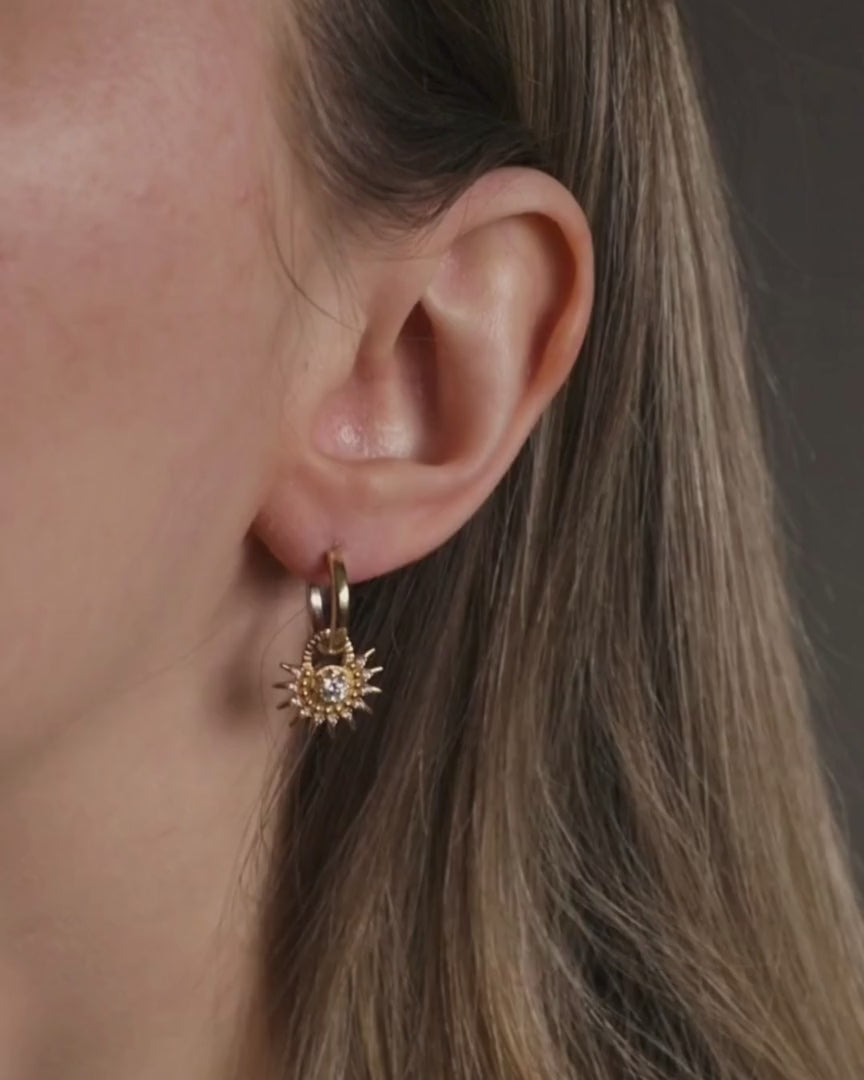 We love this pairing of our RAE earring charms with our Large CARA hoops. The hoops are reversible, so you can choose between a gold vermeil or sterling silver finish, and add the crystal RAE charms for a special finishing touch.