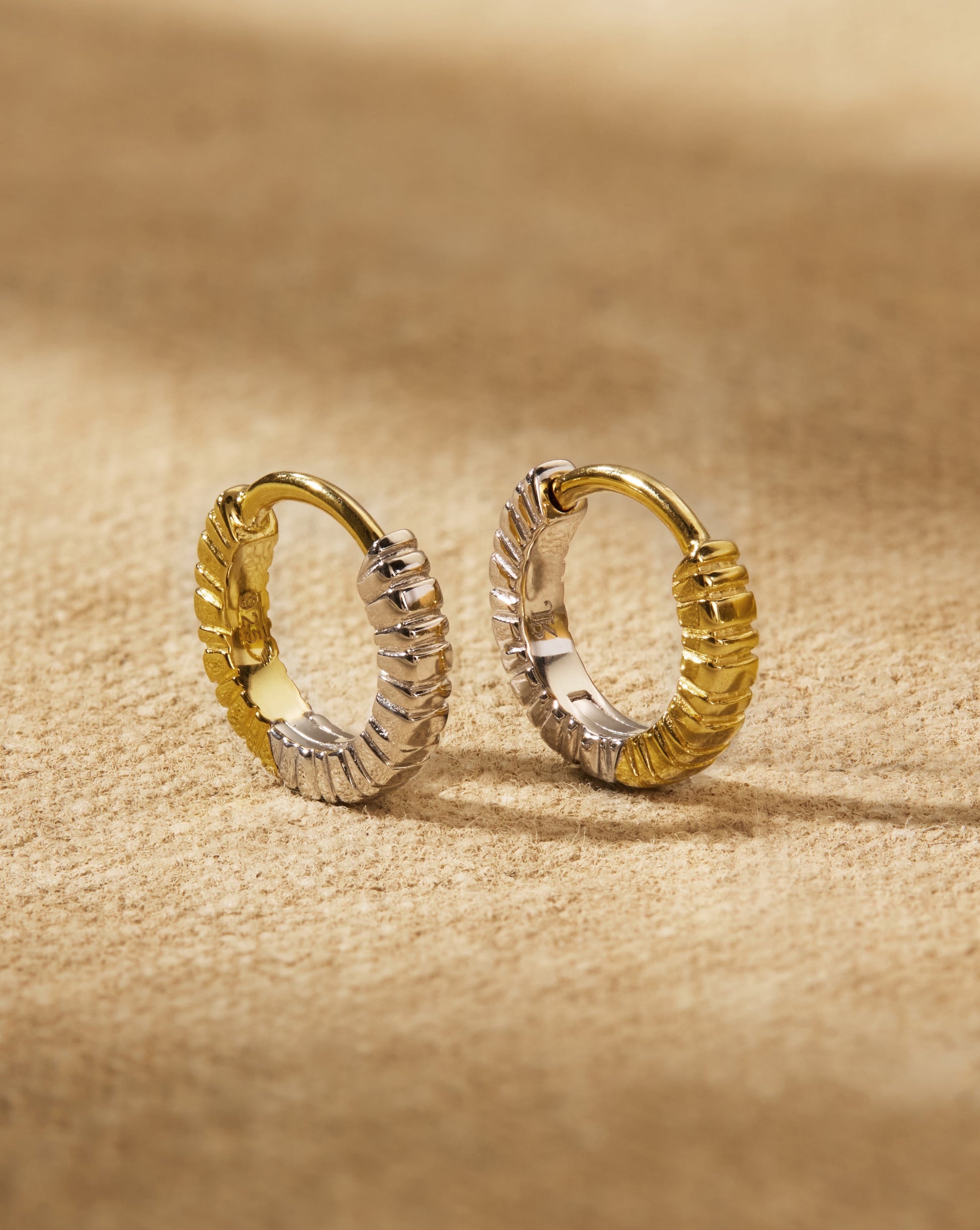 The textured design of our hero huggie COIN hoops was inspired by vintage coins. They can be worn in multiple ways: with one side in gold vermeil and the other sterling silver, they can be reversed for an instant update, and worn with our earring charms for added detail. Please note that these huggies may not fit everyone's main lobe piercings, so we recommend checking the dimensions before ordering. If in doubt, opt for the large COIN huggies instead.