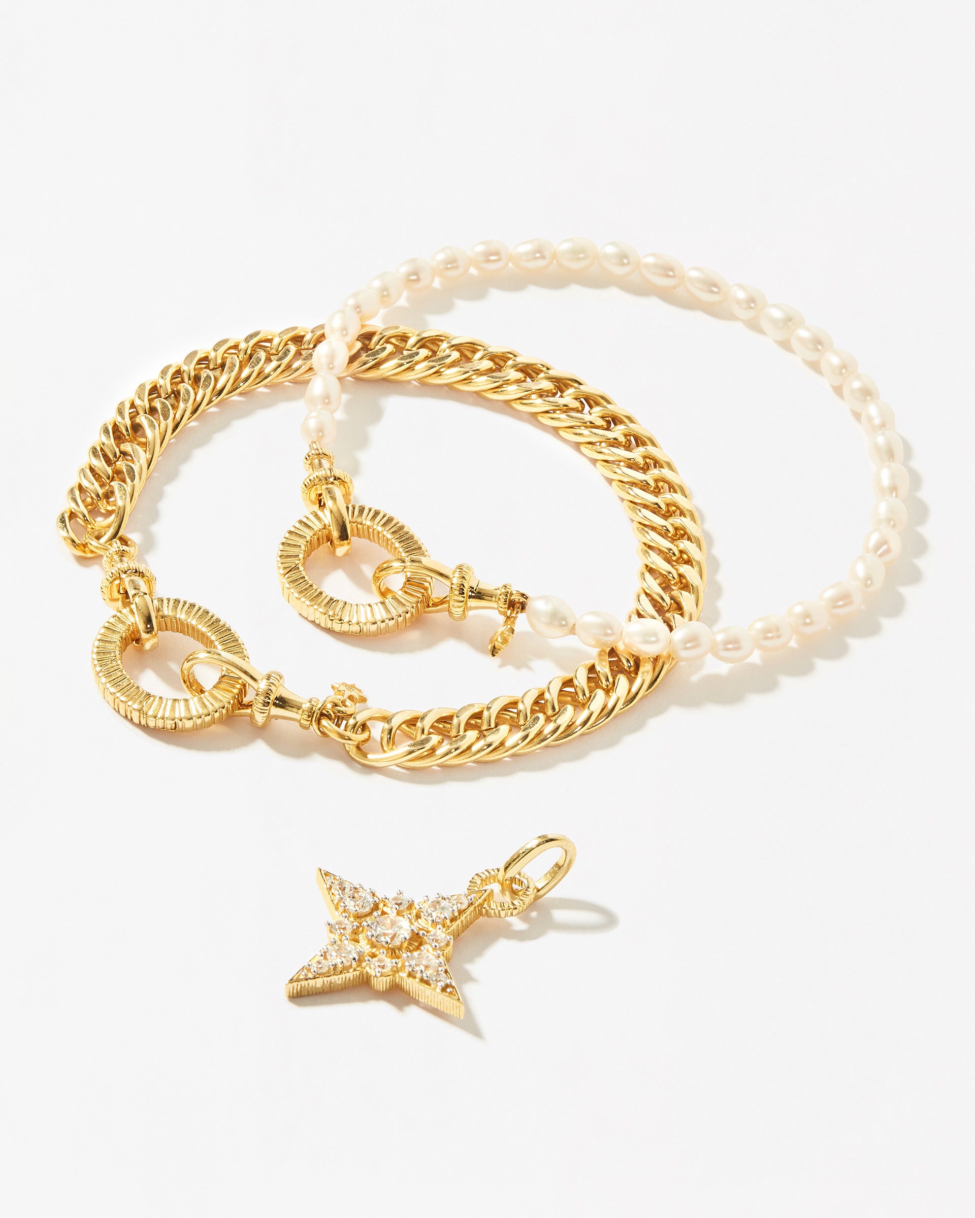 Our DUSK Multiway Set allows you to get the most out of your AERIN and DUSK bracelets – to start, try wearing them alone, perhaps removing the round link for a more simple look and shorter chain. You can also connect the bracelets side-by-side for a multi-chain look, or link them together by the clasps and wear them as a necklace. Then, you have the STELLA pendant to add to any of these combinations for extra detail. See our Multiway how-to page for more inspiration on how to wear them.