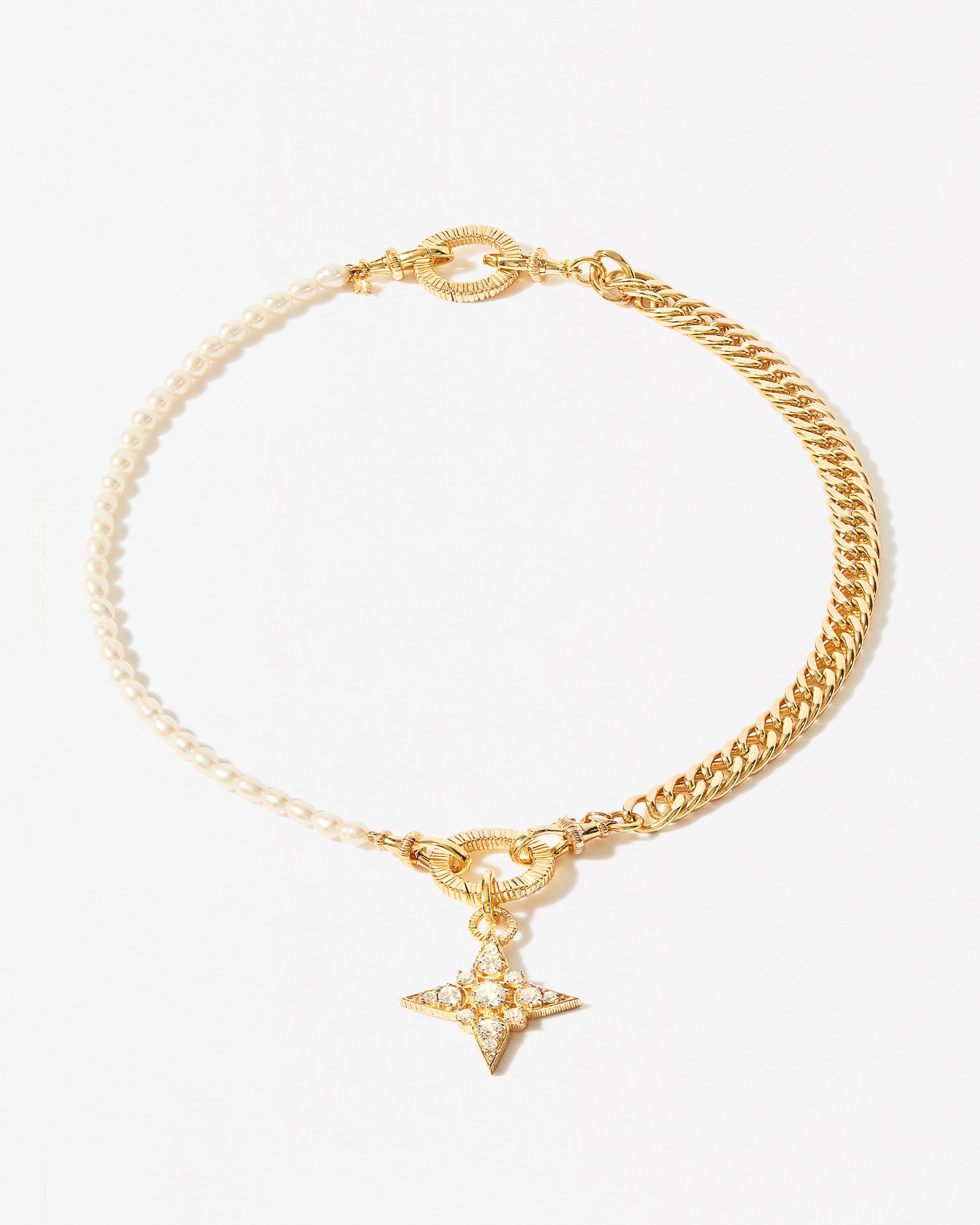 18ct recycled gold plated brass chains with an 18ct recycled gold plated brass charm with round brilliant cut white crystals