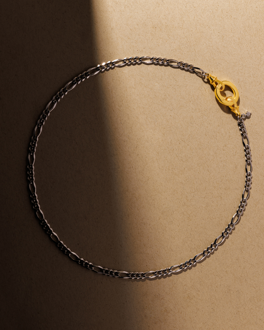 Please note: The necklace comes with the central oval clasp, the model is shown without this removable component.