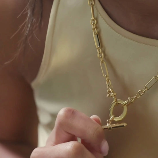 A modern twist on a classic shape, our LAUREN T-Bar has pointed ends and is set with tiny, crystal embellished stars on the central band. Our T-Bar Pendants are the perfect finishing touch for any of our multiway chains, paired here with River or worn with our finer IVY chains for a more subtle look.