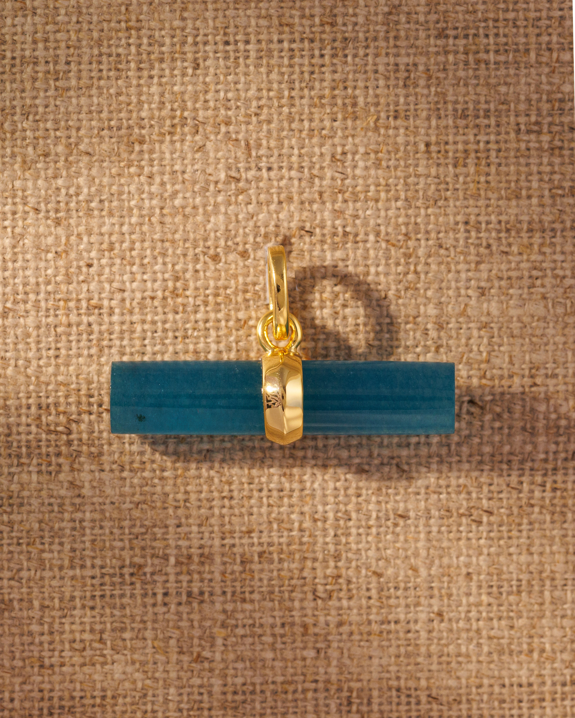 Our brand new T-Bar Pendants are the perfect finishing touch for any of our multiway chains, or worn with our IVY Chain for a more subtle look. Our Teal Quartz T-Bar features a vibrant blue gemstone bar, set in sleek polished gold. A classic silhouette, reimagined.